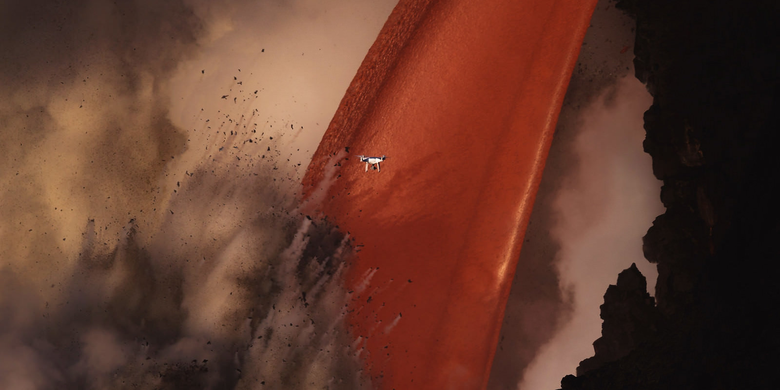 Andrew Studer recently captured this amazing shot of a (Phantom?) drone flying very close to a lava spout in Hawaii National Park. On Facebook Andrew said: