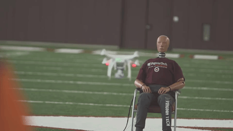 The findings from Virginia Tech are similar to the UAS Ground Collision Severity Evaluation conducted by the FAA in April, in which they compared the impact of a Phantom 3 with the impact of a piece of metal and wood hitting a crash dummy. The vertical drops were to most dangerous, as the weight of the battery pack caused the highest level of impact. When the drone flew into the dummy’s head the impact for multi propeller drones was typically less severe because of the props and arms on which the propellers are mounted reduced the force of the impact and deflected the battery pack to a degree. Bigger props do increase the risk of lacerations.