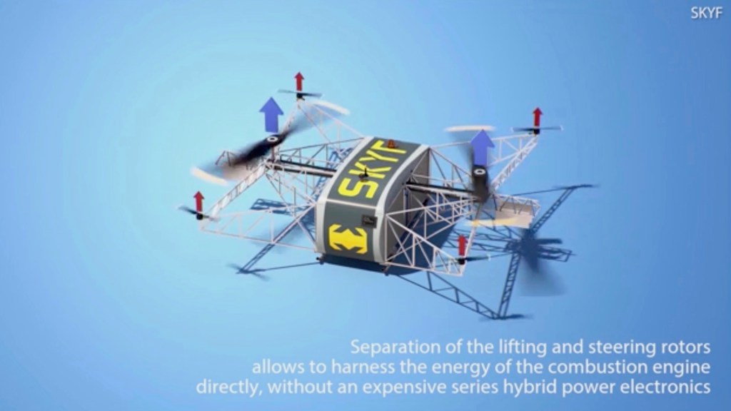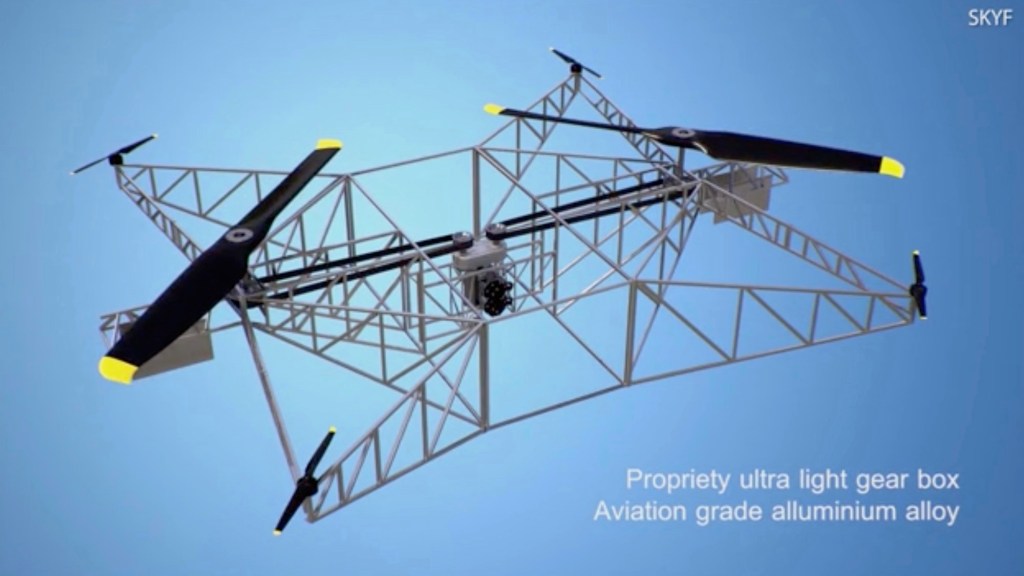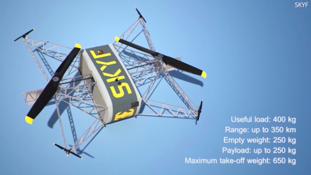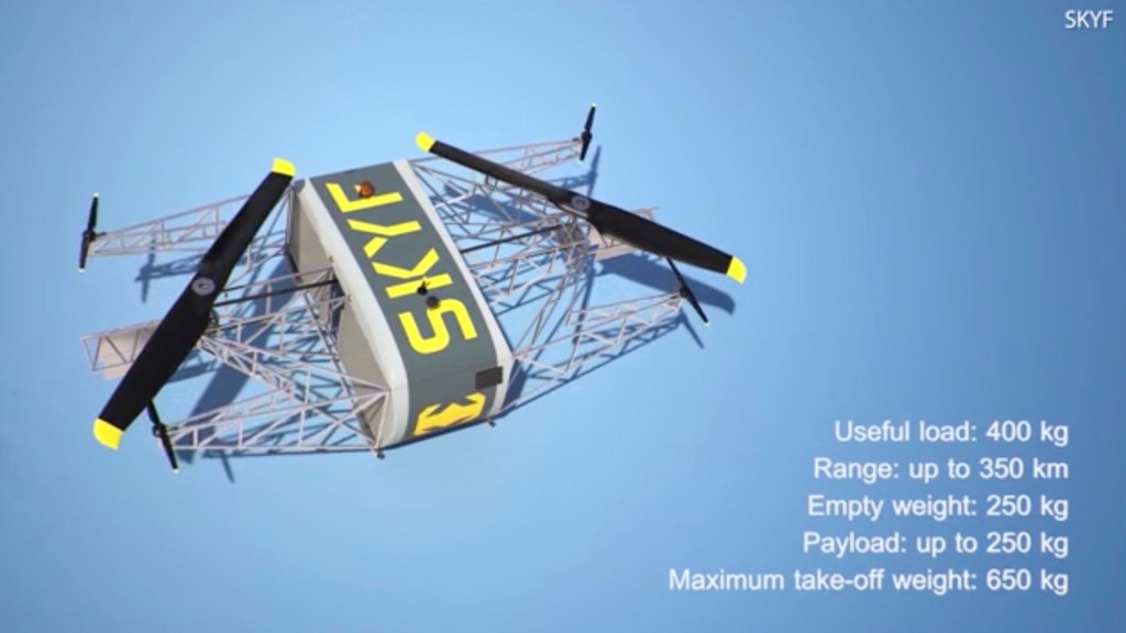 The SKYF drone has been in development since 2016 and there is very limited real video footage available. In the video clip on this website, you can see some actual test footage but most of the other imagery is either photoshopped or animated. The payload carrying ability, the flight time and distance would be truly impressive if the Russian company can deliver on these promises.