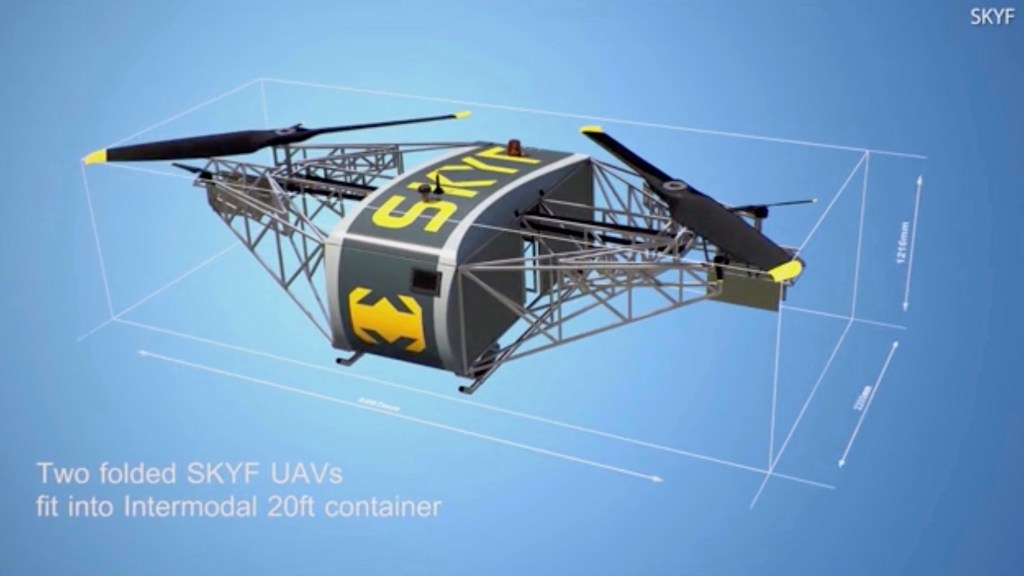 Even though the SKYF is quite a large drone, it can be partly folded and two drones would fit in a 20-foot cargo container. The drone relies on gasoline-powered engines for lift and electric motors for stabilization and control. It is this hybrid approach that makes the SKYF drone so suitable for package delivery tasks. Another advantage according to ARDN is that the combination of electric and gasoline power reduces the overall weight of the drone and brings down the price. The Russian company claims that the drone will give a range of around 220 miles when carrying a 110-pound payload.