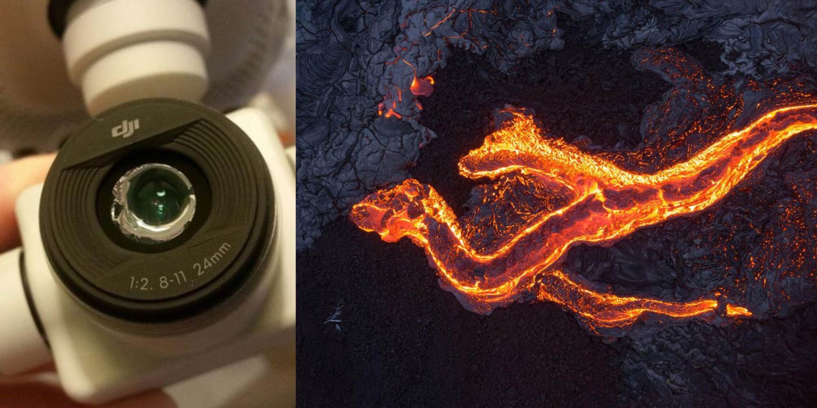 The National Geographic reported on Marom quest to get the perfect lava shot. Early October, the Israeli photographer and self-proclaimed lava-addict hiked out together with tour guide Eric Storm to the national park’s lava flows in Hawaii. At some point during their hike, new streams of lava erupted from the side of the mountain. The massive flows of lava extended beyond the boundaries of the national park. Because flying a drone inside a national park is illegal, Marom hiked outside of the park boundaries and before launching his DJI Phantom 4 drone. For the next few hours, he was able to take amazing photos of the lava streams until he noticed that one side of his screen started turning dark. After landing his drone and inspecting it, he noticed that the drone camera had melted.