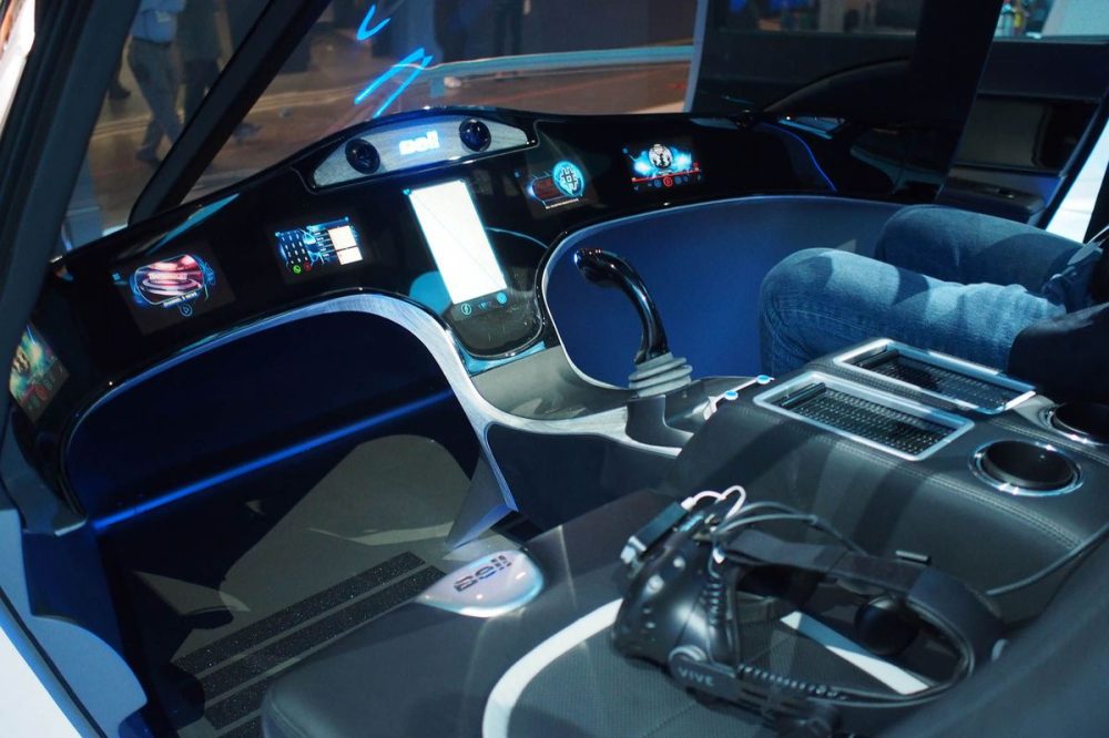 Then I got a ride in the cab of Bell’s beast, which was a real mock-up, at least. In each seat was an HTC Vive, and after putting one on, I was soon taking a virtual ride over the skyline to the local airport. While in flight, the simulation had a few sample user experiences, showing what it would be like to get news highlights, view a map, take a FaceTime call, and a couple of other things. In a few minutes, the aircraft landed at a dedicated heliport at the airport, and showed a message that I had saved 45 minutes over taking a car.