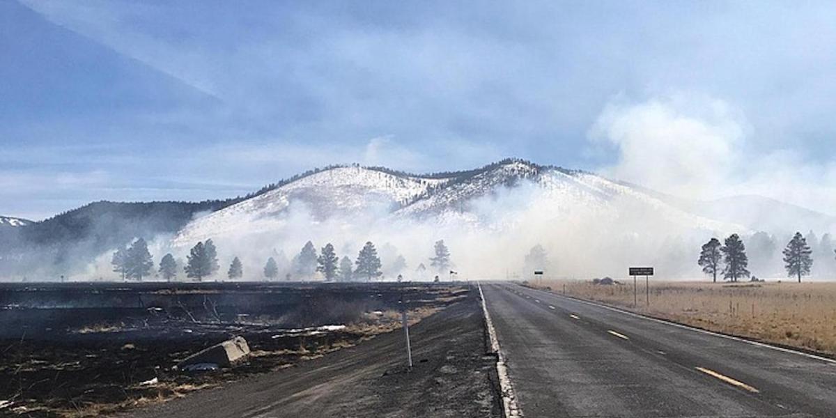 Authorities say that a drone crash sparked a wildfire northwest of Flagstaff, Ariz. More than 300 acres were burned before the fire was contained late Tuesday afternoon. Visibility was limited as a result of the smoke produced by the burning grasslands.
