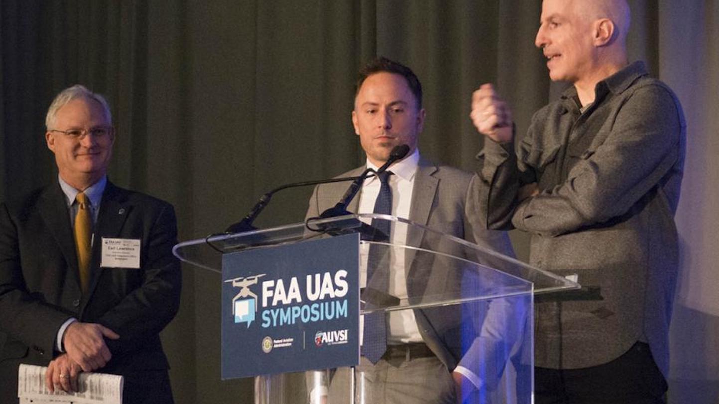 Photo: The FAA’s Earl Lawrence, X’s James Burgess and Amazon’s Gur Kimchi discuss drone package delivery. Courtesy of AUVSI.