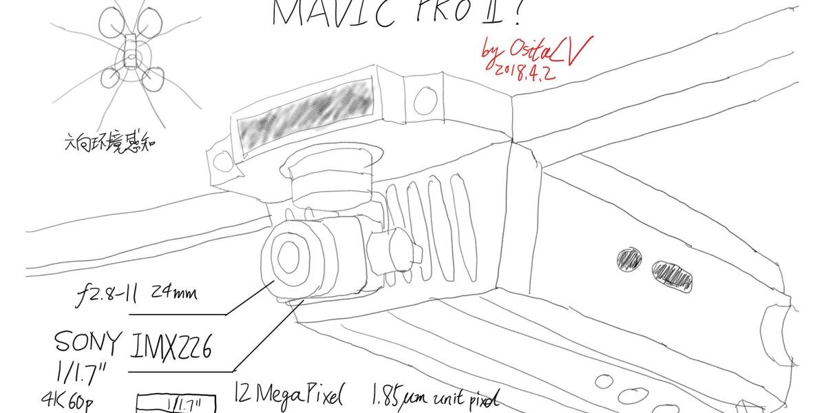 What is interesting in OstiaLV’s drawings is that the design of the drone itself seems to exactly match the design of the current DJI Mavic Pro. I find it hard to believe that the new DJI Mavic Pro II (2) would have the same design as the outgoing model with the vulnerable camera/gimbal setup. When you look at how much the design of the Mavic Air has been improved over the design of the Mavic Pro and Spark, it would be hard to imagine that DJI will not improve the design of the new Mavic Pro II (2). The fact that OsitaLV keeps sketching the same drone in his drawings, seems to indicate that he has not actually seen the new DJI Mavic Pro II (2) yet.