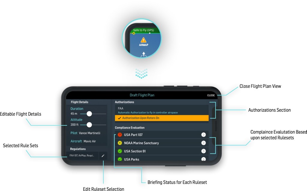 The AirMap for Drones mobile app has always helped you to know your airspace with mission-critical airspace information including airspace conditions, weather, rules, advisories, obstacles, and more. With today’s launch, commercial and recreational pilots alike will have the following capabilities at their fingertips, with just one app: