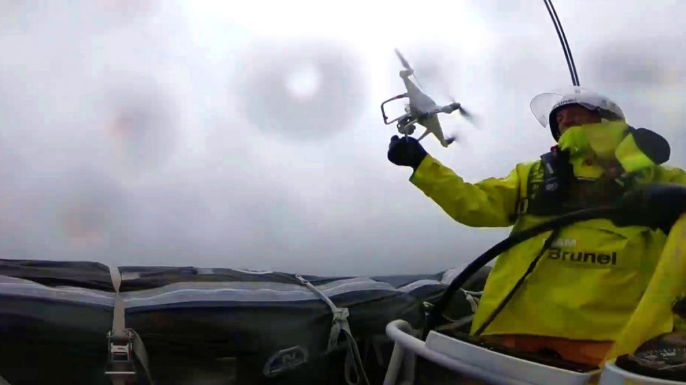 In high wind conditions, on a boat that is surfing down and crashing through waves, Team Brunel thought it was a great moment to fly their DJI Phantom 4. I couldn’t agree more. What better way to capture and convey the speed and the general sailing conditions than with some amazing aerial drone footage. And as if the launch and flying of the drone, under those circumstances, isn’t hard enough, what do you think about getting the drone back on board?