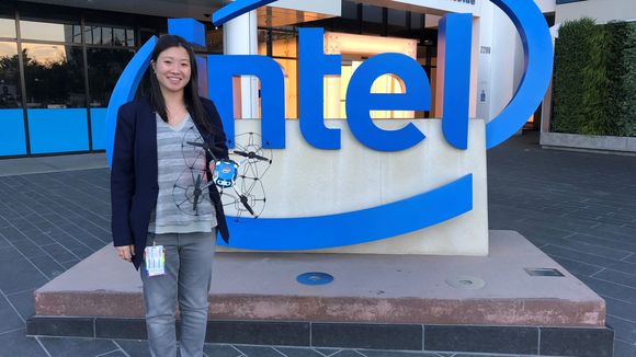 Natalie Cheung, general manager of Drone Light Shows at Intel with one of the “Shooting Star Drones.”
