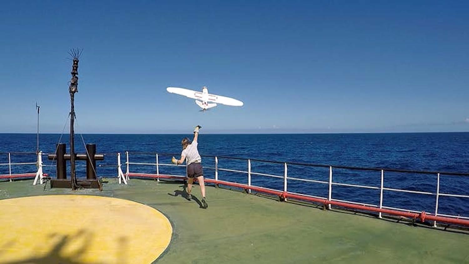 Completing the mission the fixed-wing Aeromapper Talon Amphibious drone can belly land on the water. The company claims that it’s the only unmanned aircraft system that is able to do so. Alternatively, a parachute can be used for vertical landings on ground surfaces.