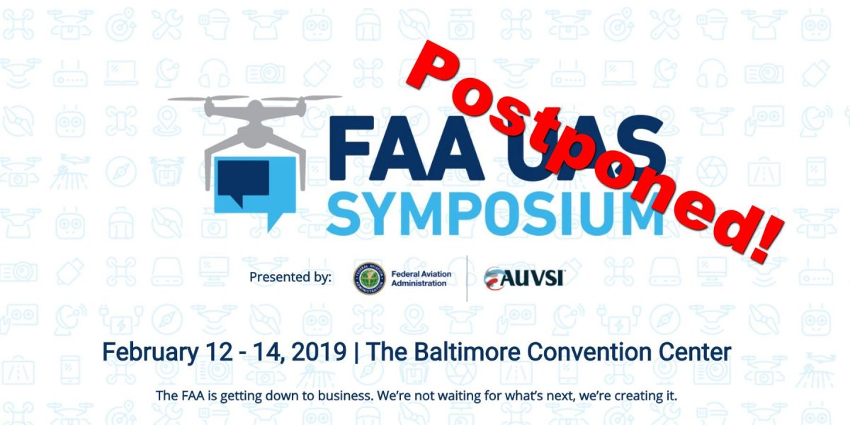 The FAA UAS Symposium that was scheduled to take place at the Baltimore Convention Center from February 12-14, 2019 has been officially postponed. In an email to the media, AUVSI informs us that: