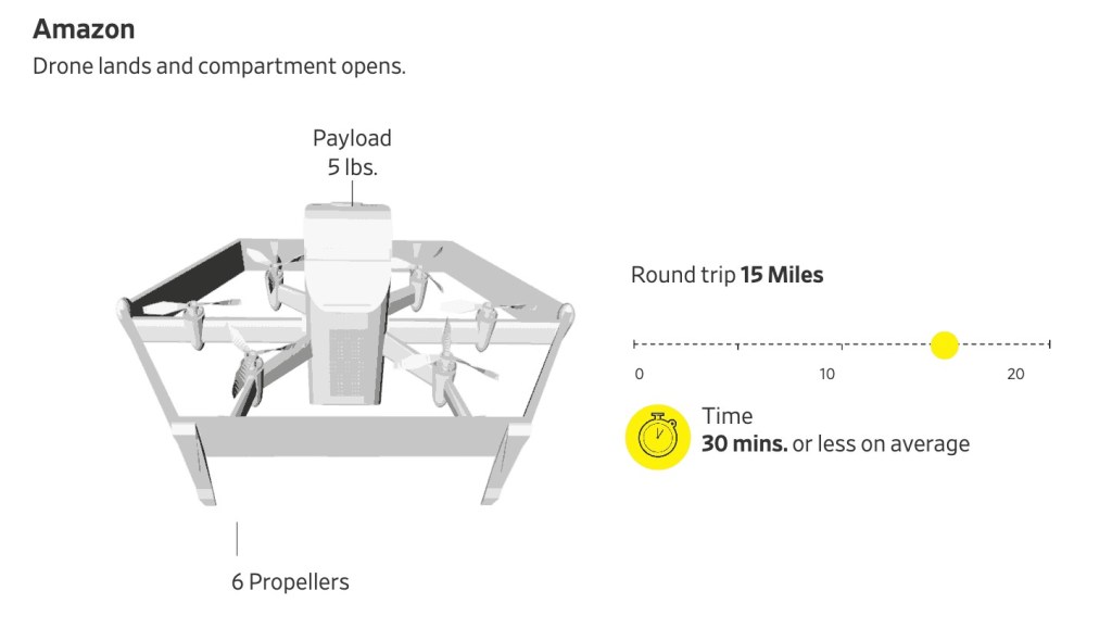 This morning the Wall Street Journal has a detailed article about deliveries by drone. They take a closer look at Amazon, Wing Aviation and Uber Technologies. For some reason, UPS with their Matternet drones are not getting that same amount of attention in this article, even though they recently were awarded a Part 135 certification by the Federal Aviation Administration (FAA).