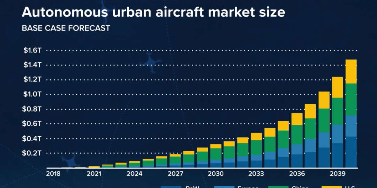 Autonomous Urban Aircraft could become a 1.5 trillion dollar industry by 2040 that includes everything from delivery drones, flying taxis, military unmanned aerial vehicles and industrial worker drones.