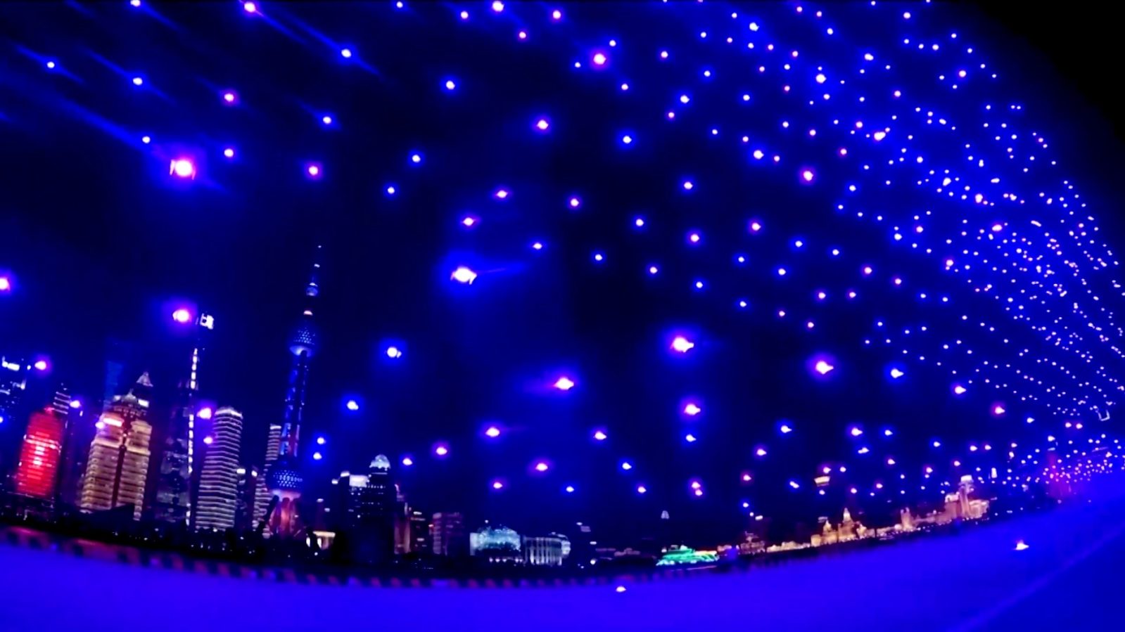 Photo: NYT – A drone display over the Huangpu River in Shanghai featuring many different shapes.