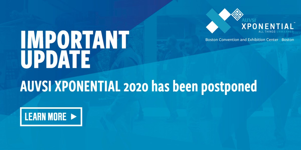 Based on currently available information, and with the best interests of our members, exhibitors, attendees and the global community in mind, the AUVSI Board of Directors has made the difficult but necessary decision to postpone AUVSI XPONENTIAL 2020. Recognizing the importance of this event to your organizations, our ecosystem, and partners in Boston, we are working on shifting the dates of XPONENTIAL 2020 to a more suitable timeframe and have tentatively identified the dates of August 10-12 for the 2020 event.