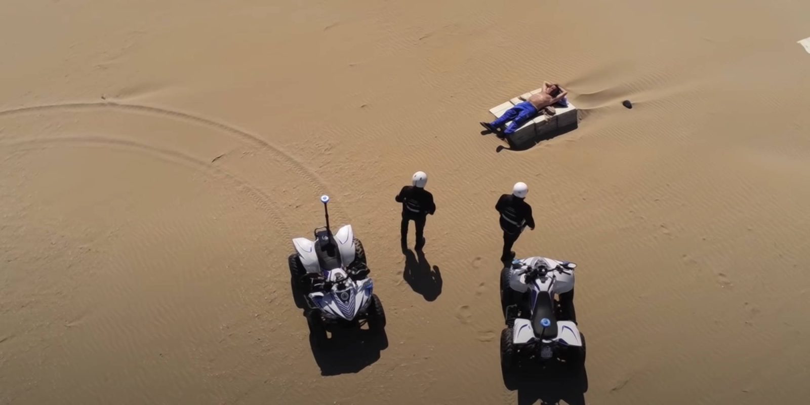 In the video, which may have been captured by a Parrot Anafi, we are able to see a person sunbathing in the distance. Police units on quad-bikes then enter the frame and go confront the man. A police car joins a little while later, and the unidentified man ultimately receives a ticket for violating the stay-at-home order.