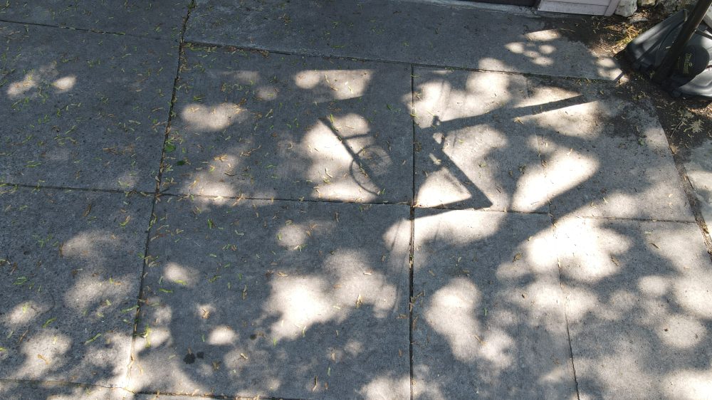 Of course, once back at home, I realized that I had been using the single-shot setting — which takes images at a default 12 MP, rather than the 48 MP option. Here, I’ve taken a couple of shots in the back yard over a spot that tests dynamic range and detail. The results? Well, yeah — shooting in the 48 MP mode clearly provides way better resolution once you start zooming in.