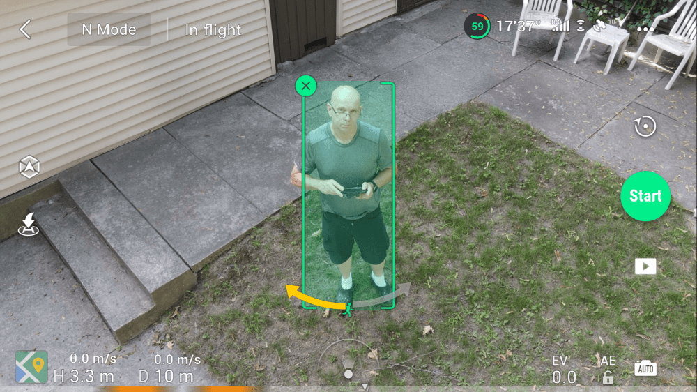 See that warning? “Mobile device CPU fully loaded. Related performance will be affected.” Although DJI’s specs indicate that an iPhone 6s is compatible with DJI Fly (and, indeed, it had been working fine), I just couldn’t seem to get it to track me without this error message popping up. It wouldn’t surprise me if this iPhone is getting just a little long in the tooth, though a quick online search didn’t seem to reveal significant complaints on this front.