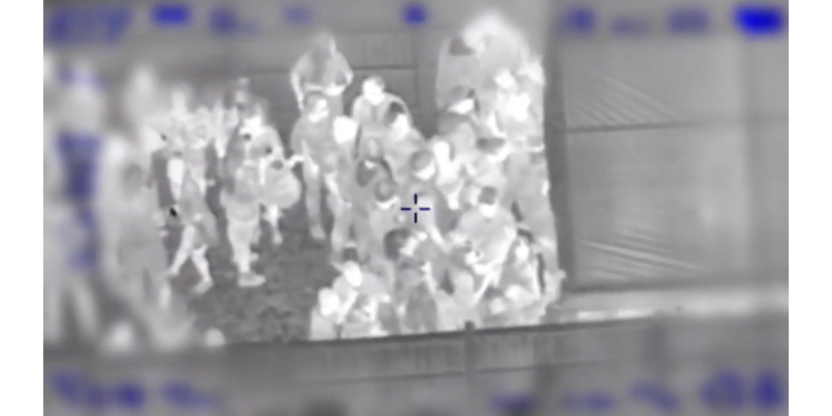 Using a drone equipped with a FLIR camera, officers obtained these thermal images. There can be no doubt there were a lot of people at the bash – and that they were definitely not obeying guidelines for social distancing.