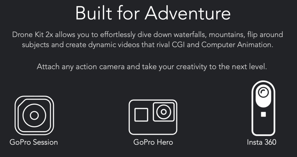 On the video front, the Drone Kit 2X allows you to fly with a variety of proven cameras: