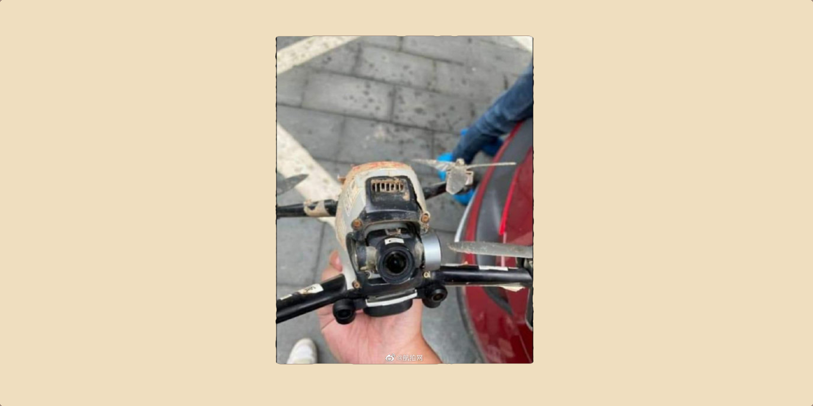 An image from Chinese social media shows a drone that’s done a face plant or two. This is definitely not an authorized product shot.