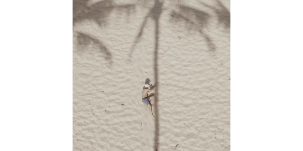 It’s the shadow of a palm tree. And, coupled with a person on the beach, it makes the “Searching for Coconuts” video something pretty spectacular: