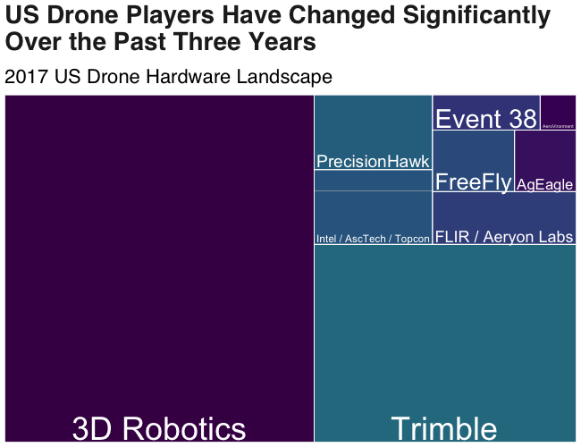 Of particular interest is this gif, which shows how the US drone hardware landscape has changed significantly in just three years. Most notably, Skydio has supplanted 3D Robotics.