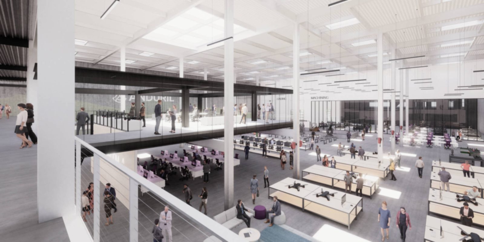 Along with the already standing building, Anduril plans to build a custom 200,000-square-foot research and development center equipped with machine shops, labs, welding areas, and high-power testing equipment.