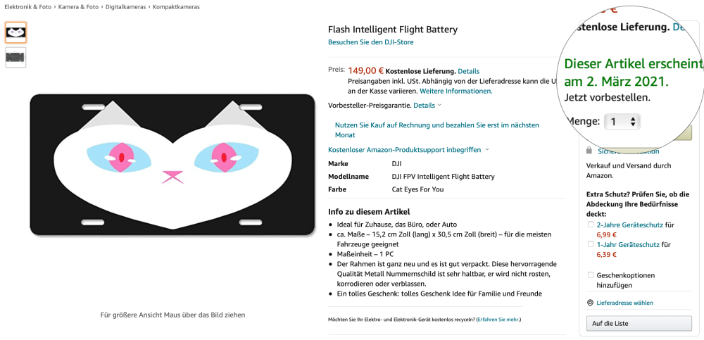We are thinking that DJI will call the new FPV drone DJI FLASH, and is fueled by a number of accessories that have appeared on the German version of the Amazon web store, including the Flash Gimbal Camera, Flash Goggles Battery, Flash Propeller Guard, and a number of other products. All these accessories have a release date of March 2, 2021. Probably the international release date is 2nd of March.