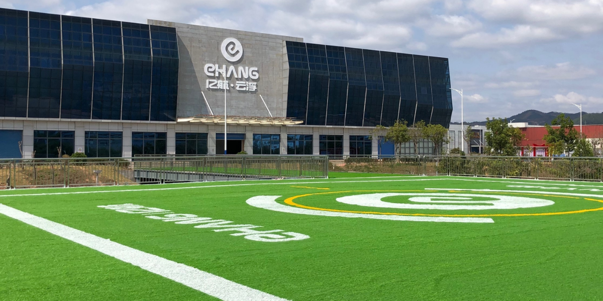 EHang denies the allegations contained in the report, and has been steadily trying to refute the charges. It has also been attempting to regain control of the narrative to help get things back on track. Today, it released a number of details about its massive new manufacturing facility, which is still being completed. It also released a number of photos, which show a clearly massive building with an astroturf landing pad out front (pictured above).