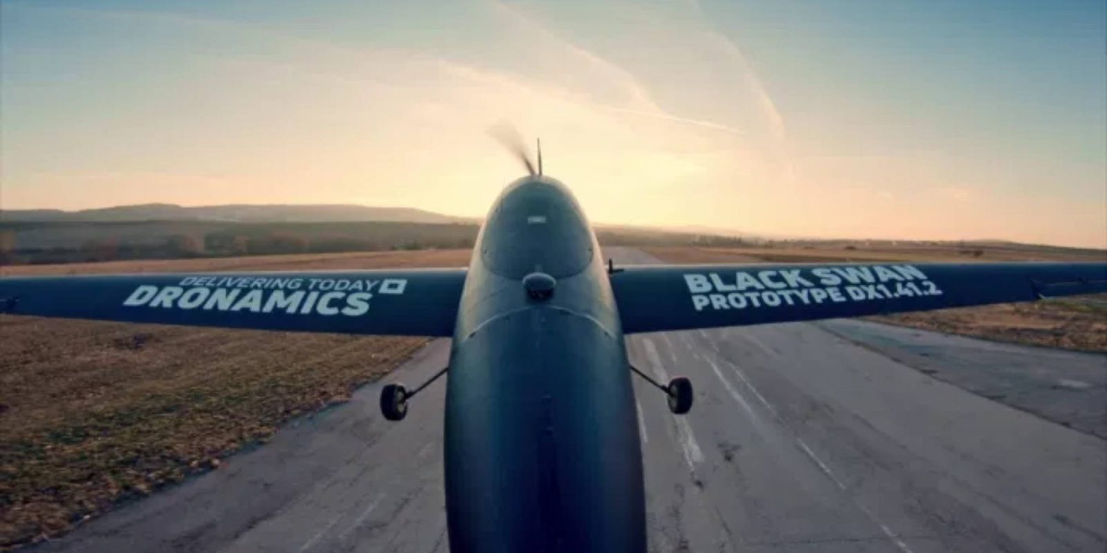 In 2018 the company released a video of the Black Swan, a cargo drone capable of transporting up to 350 kg (770 lbs) at a distance of 2,500 km (1,550 miles). Dronamics boasted that the drone could deliver goods faster and cheaper than any airplane currently available on the market.