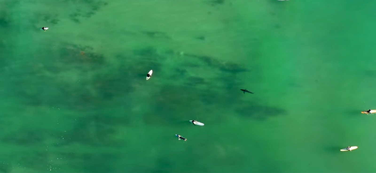 Gauna’s description is a paragon of understatement. His top-down angle filming of the translucent waters makes it evident just how close the sharks get – over and again – to the insouciant surfers. The humans, just as obviously, never see the forms of their slightly submerged observers. Conversely, those massive, toothy chaperones are clearly disinterested in the potential all-you-can-eat opportunities surrounding them.