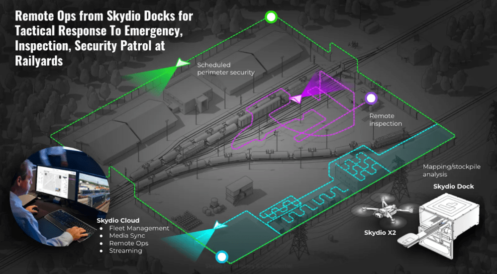The news came in a blog post on the Skydio website – and it’s very significant. The FAA has given the green light for BNSF Railway to remotely operate dock-based Skydio drones. The blog says “it is the first national approval of remote, dock-based operations in the United States.”
