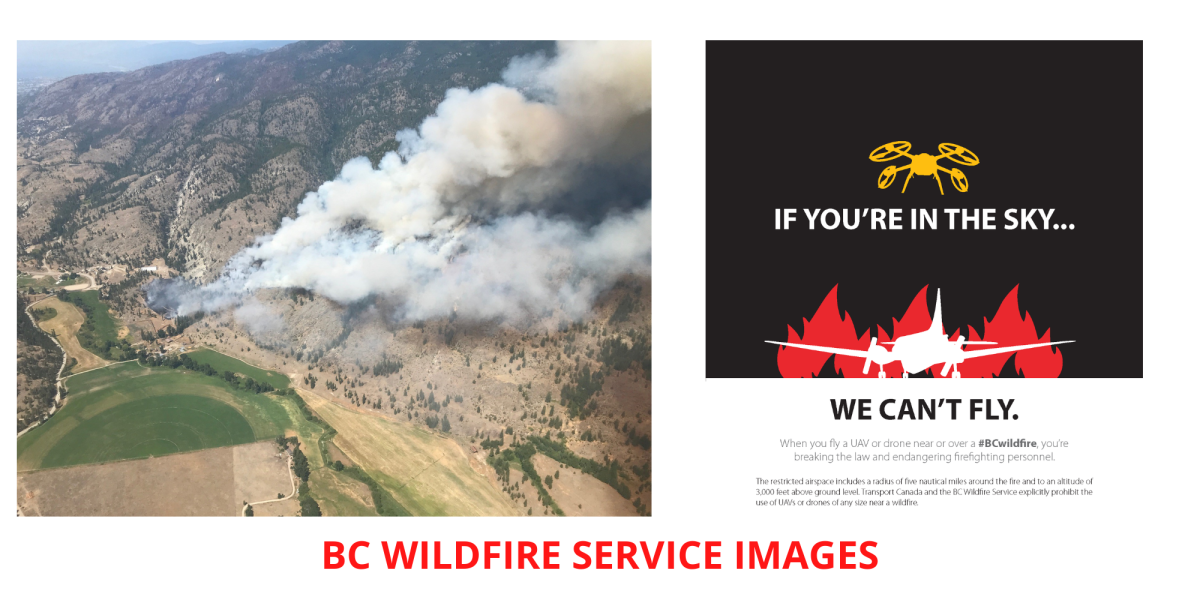 As you read this, firefighting operations are underway at multiple sites in British Columbia. Some of the fires are out of control and significant resources have been deployed. They include firefighters working on the ground, helicopters, and fixed-wing aircraft. Speed is critical when trying to prevent wildfires from spreading, and crewed aircraft are used to drop crews as well as for fire mitigation (dropping water or other flame retardants). The airspace needs to be clear of drones.