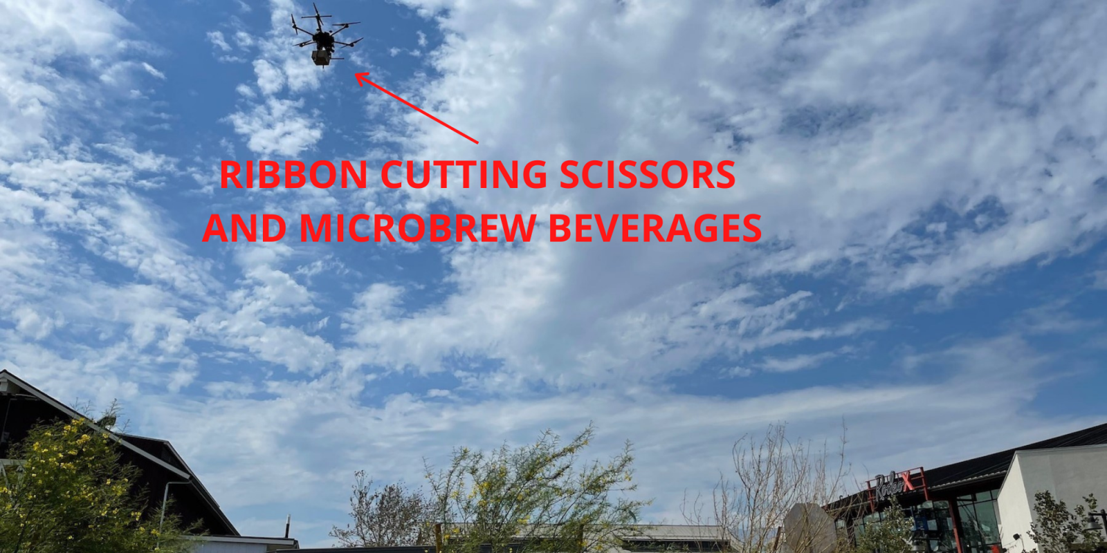 A resort-style residential community in Ontario, California, has begun testing package deliveries via drones. At the first delivery from the skies today, a drone delivered ribbon-cutting scissors and microbrew beverages to the Ontario mayor, thus commemorating the opening of a marketplace at the New Haven master-planned development. Drone technology companies Airspace Link and DroneUp made the project possible.