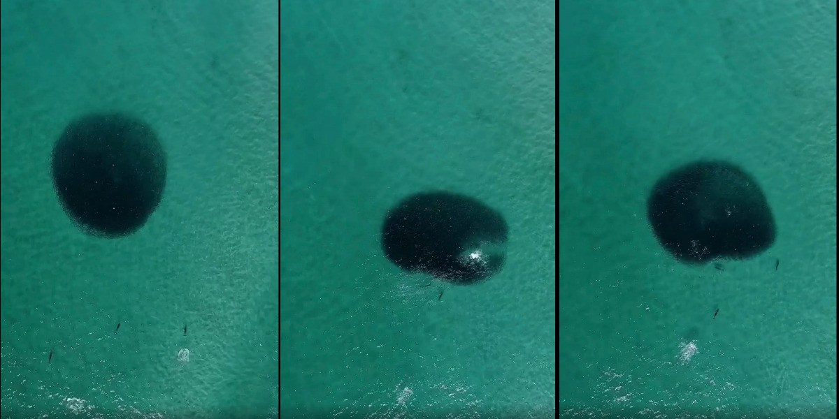 The footage was uploaded on Iggleden’s Dronesharkapp Instagram account on Friday after he captured the action earlier in the day just off Sydney’s Tamarama Beach. The five-minute video follows the dolphins as they catch sight of the giant group of lox just waiting to happen, then charge through the fish for what becomes a major nosh-a-thon.