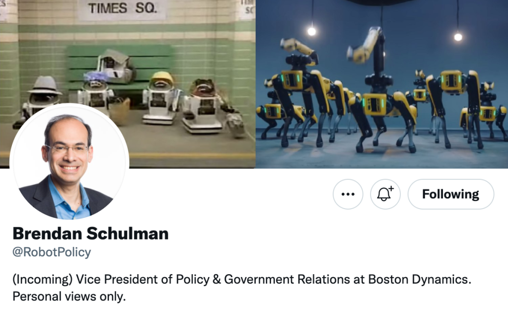 So let’s talk about your new position, vice president of policy & government relations at Boston Dynamics. Why the interest in that company?