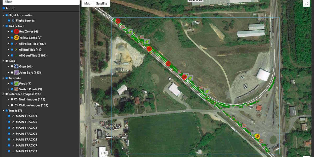 Ardenna’s software uses advanced machine-learning algorithms to automatically process and analyze visual data captured during drone surveys, identifying and measuring railway features, classifying anomalies, and assessing the health of track and railbed infrastructure.