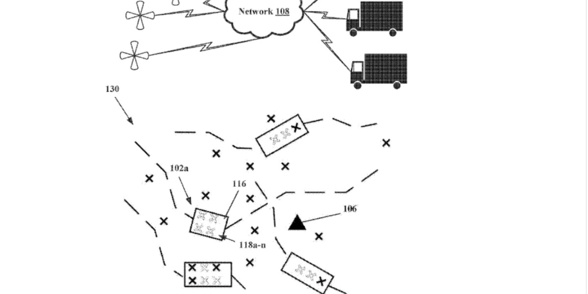 “After delivery, a drone can either dock back with the original delivery vehicle or dock somewhere else such as another delivery vehicle or a fixed docking station,” the patent says. “The drone can be configured to ascend in the air to a specified height to gain line-of-sight to potential vehicles nearby. The drone then initiates a discovery phase to obtain information on all available in-range docking/charging stations. It then wirelessly broadcasts a ‘request’ to discoverable/discovered stations with information regarding the drone’s current status (location, remaining charge, and so forth).”